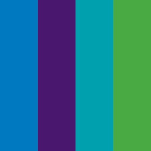 The colors of Alcon are #0079c1, #49176d, #00a0af, #49a942 according to brandingguide.app.