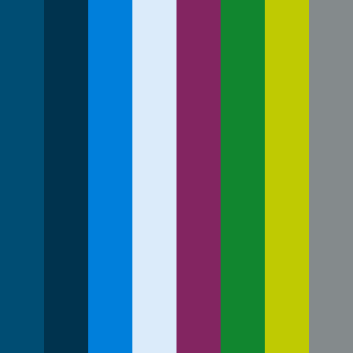 The colors of Arriva are #004d73, #00334e, #007fdb, #dbebfa, #832561, #11862f, #bfca02, #848a8c according to brandingguide.app.
