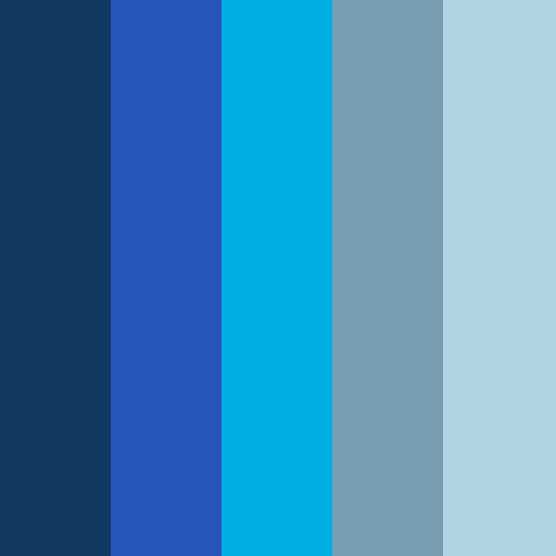 The colors of Blockchain are #123962, #2754ba, #00aee6, #799eb2, #b1d4e5 according to www.blockchain.com.