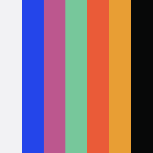 The colors of Dental Plans are #f2f2f4, #2445ea, #bc578e, #77c79b, #ea5b38, #e89e34, #070808 according to images.dentalplans.com.