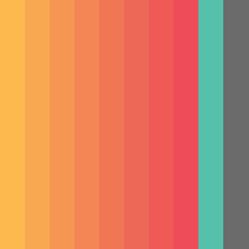 The colors of Dindr are #fdb94e, #f9a852, #f69653, #f38654, #f07654, #ed6856, #ef5956, #ee4c58, #56c1ab, #6a6b6a.