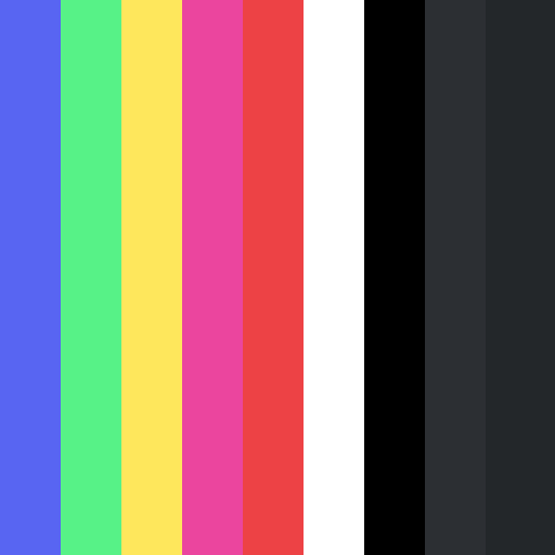 The colors of Discord are #5865f2, #57f287, #fee75c, #eb459e, #ed4245, #ffffff, #000000, #2c2f33, #23272a according to discordapp.com.