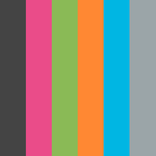 The colors of Dribbble are #444444, #ea4c89, #8aba56, #ff8833, #00b6e3, #9ba5a8 according to dribbble.com.