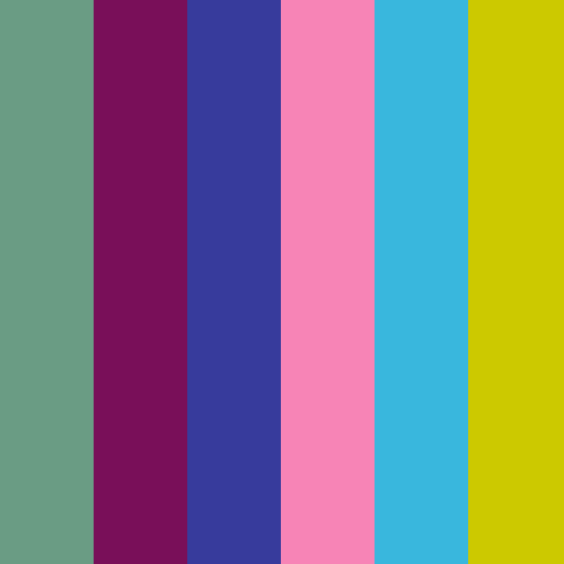 The colors of Estimote are #6a9c84, #790f59, #373b9c, #f784b6, #39b7dd, #ccc900 according to estimote.com.