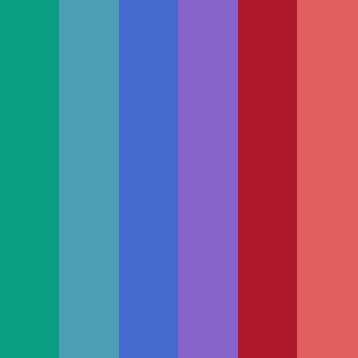 The colors of Gospel for Asia are #099d84, #4d9db3, #456acf, #8762c9, #ad182d, #e15f5f according to github.com.
