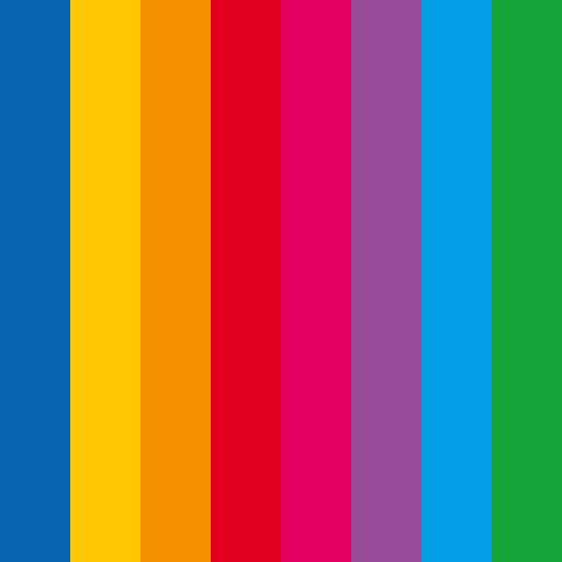 The colors of GVB are #0863b5, #fec600, #f39100, #e3001f, #e50064, #954a97, #009ee3, #13a538 according to assets.gvb.nl.