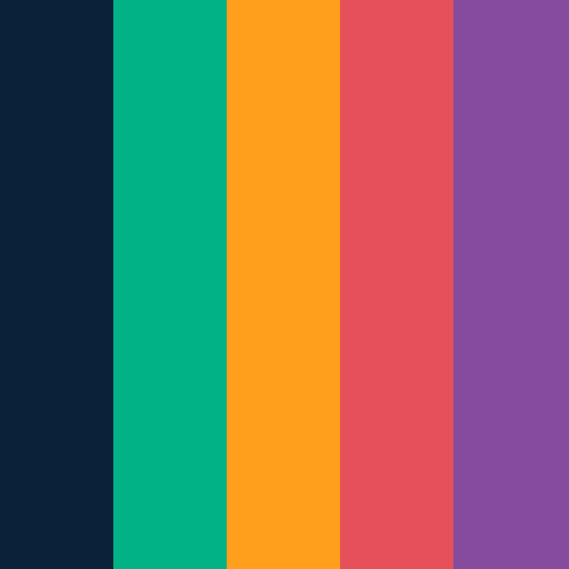 The colors of Redox are #0a2239, #01b287, #ff9f1c, #e5505a, #854c9e according to www.redoxengine.com.